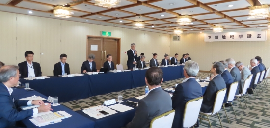 中経連および国土交通省中部地方整備局は、第14回中部地域懇話会を開催し、勝野会長、森本局長をはじめ22名が参加した。本懇話会は、中部圏の経済成長と発展に向けた意見交換を通じて、双方の施策や取り組みに反映することを目的に毎年開催している。それぞれのトップによる挨拶の後、整備局は中部圏の特徴や社会インフラ整備に関する最近の動きについて、中経連は主要な事業活動や今年3月に公表した緊急提言「『強靱かつ持続可能』な上下水道事業に向けて ~能登半島地震と八潮市道路陥没事故を受けて~」について紹介した上で、国土強靱化に資する取り組みなどについて意見交換した。