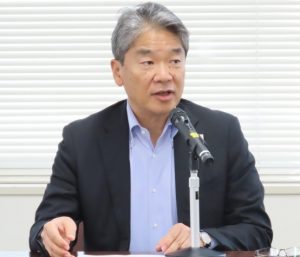 第2部では、高原委員長の挨拶に続き、事務局よりサプライチェーンにおけるデータ連携の現状と課題について説明をした後、意見交換を行った。また、次年度以降の活動も見据え、会員企業の取り組み状況や課題を把握すべく、会員企業を対象にアンケート調査を実施する旨を説明した。