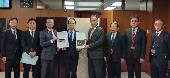 中経連 根本常務理事は、長野県 阿部知事、飯田市 佐藤市長、浜松市 中野市長、湖西市 田内市長、東栄町 村上町長、喬木(たかぎ)村 市瀬村長、新城市 建部副市長とともに、橋本財務省主計局主査、塩見国土交通審議官をはじめ国土交通省幹部と面談し、三遠南信自動車道の早期整備を要望した。