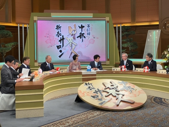 CBCテレビの新春恒例番組「中部財界人 新春サロン」に、勝野会長をはじめとする中部財界のリーダー8名が出演し、2026年の展望や抱負を語った。